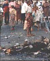 voor mijn ogen een mens levend verbranden.