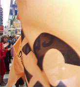 De bejaarde demonstranten plakken over die