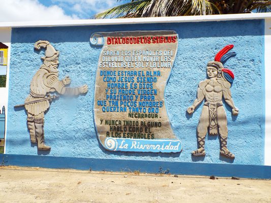 Links Conquistador Cacique Gil González Dávila Protesten tegen aanleg Nicaraguakanaal