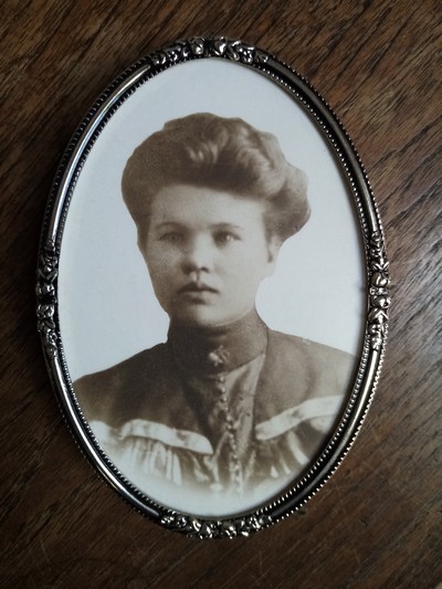 "........ Het enige dat ontbreekt zijn de portretfoto's van oma's en opa's die er toen in zaten. - Zoals deze foto van mijn grootmoeder die ik nog steeds bewaar ............."