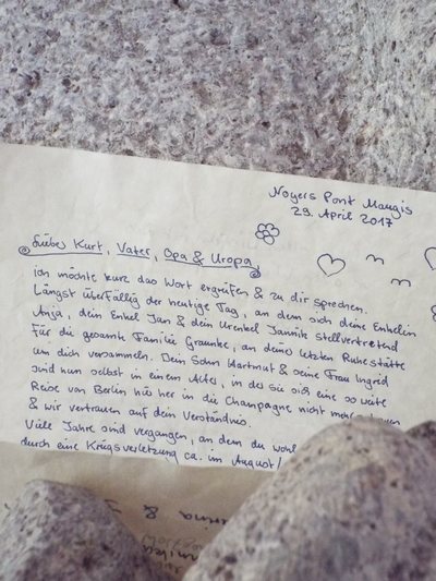 "........... Naast de gedenksteen staat in de vrije ruimte een beeld van een treurende vrouw die vorig jaar april een handgeschreven brief in haar hand gedrukt heeft gekregen. ............."