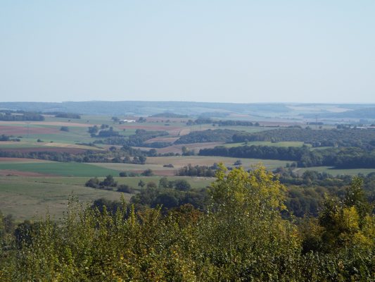 "........... kijk je kilometers ver over de groene laagvlakte waardoor onder andere de Maas stroomt. ............."