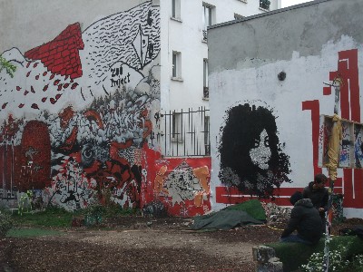 "........... Onkruid, veel onkruid, erg veel zwerfvuil, achterin oude stoelen en een paar tentjes waarin wordt gewoond, maar vooral gladde hoge muren waarop graffitikunstenaars zich kunnen uitleven. ............."
