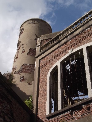 "........... De somber ogende gebouwen van de in de jaren 50 van de vorige eeuw gesloten steenkolenmijn Marcasse zijn totaal vervallen, ............."