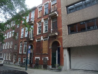 "........... In de Roo-Valkstraat is de brandgrens goed te zien, rechts staan huizen van verschillende “generaties” naast elkaar, ............."
