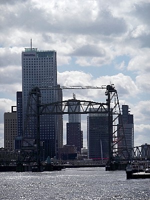 "........... Daar vandaan heeft men uitzicht over de rivier in de richting van „de Hef“ en de Koninginnebrug, die de zuidelijke Maasoever met het Noordereiland verbinden. ............."