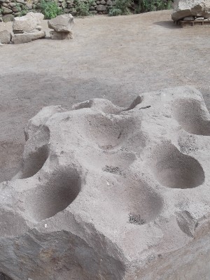"........... en stenen met door het malen van granen (?) uitgesleten gaten. ............."