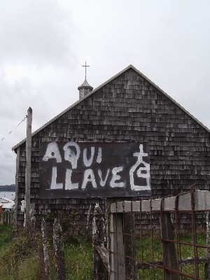 "........... Er staat echter ook een uitnodigend bordje met een uit de vrije hand getekend kerkje en de woorden AQUI LLAVE – hier is sleutel – ............."