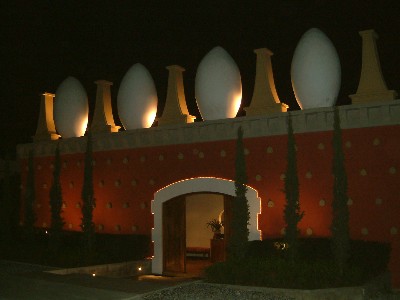 "........... De voorgevel van dat restaurant was een quasi imitatie van de zij- en achtergevel van het museum, inclusief de Dalí-eieren op de dakrand. ............."