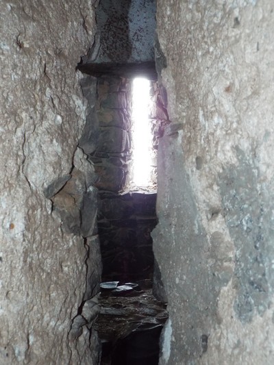 "........... Wat we wel delen is de foto die ik maakte van van een cel met dankzij een kleine opening uitzicht op de oceaan en het kleine raampje op zijn doek waardoor het zeewater is te zien ............."