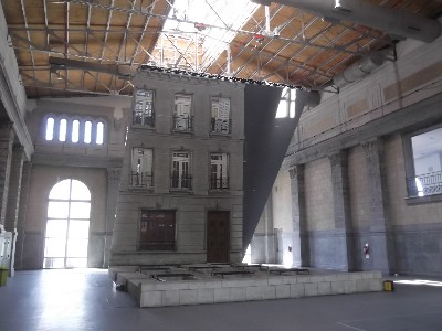 "........... Zelfs de enorme installatie in de voormalige turbinekamer van een typische porteense gevel die wordt verdubbeld door de even grote spiegel die ervoor op de vloer is aangebracht, verandert daar niets aan. ............."