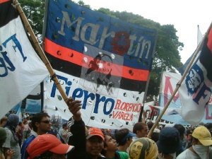 "............Kort daarna arriveren de met kleurige spandoeken en vlaggen bewapende demonstranten. Evita en Che en de 30.000 desaparecidos presente!! ................"
