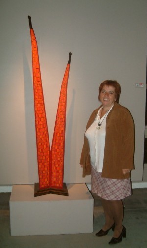 Op de foto poseert María Causa naast het werk "Brotos Rojos"