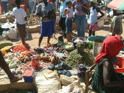 "........... Microbedrijfjes zijn het, de lokale zzp-ers, die prachtig rode tomaten, gedroogde vis - je kunt de Caribische Zee bijna ruiken - yams, zoete aardappelen, okra, bakbananen en enorme watermeloenen verhandelen. ............."