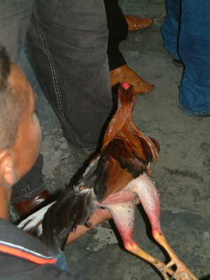 ".......... De hanen zijn aan de onderkant kaalgeplukt, kippenvlees zoals het in de winkel ligt. ..............."
