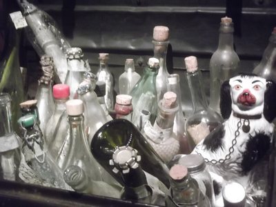 "........... In sommige daarvan collages die met het zeemansleven te maken hebben. ...... flessenpost, ............."