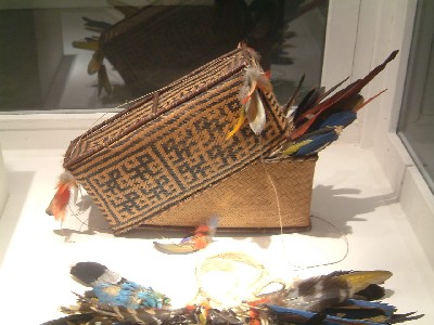 ...........Een van gras gevlochten doosje om veren in te bewaren, net een juwelendoosje en van gras gevlochten fuiken. Huisvlijt dat door de verzamelaars tot kunst is verheven en inderdaad een heel stuk mooier is dan alle “kunstwerken” die wat mij betreft niet meer dan het predikaat “huisvlijt” verdienen.
