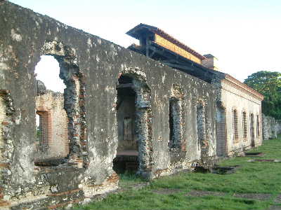 ".......... Van de achterste helft zijn de muren, het dak, de vloer en de ovens gerestaureerd, de rest is gewoon ruïne. ................."