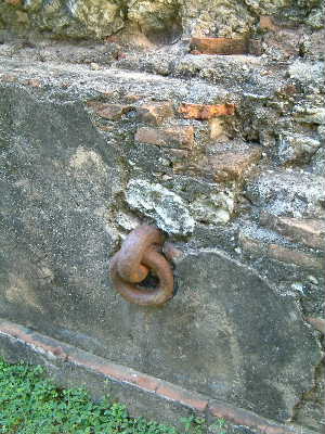 ".......... In de kelderruimte zijn stevige ijzeren ringen in de muur bevestigd “dat was de martelkelder” meldt de antropologe droogjes. ..............."