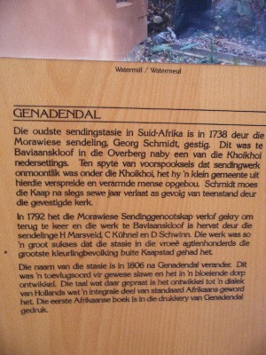 ".......... Ter plekke neem ik me voor om tijdens mijn verblijf in Zuid-Afrika een aantal van die oude zendingsposten op te gaan zoeken, zoals Genadendal bijvoorbeeld, waar ik een week geleden nog niets vermoedend voorbij reed. ............."