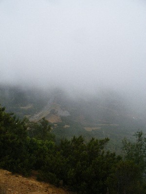 "........... begint de weg te klimmen en beginnen de wolken te dalen. Mistflarden die overgaan in dichte mist. Zodoende valt er weinig van het uitzicht - dat erg mooi zou moeten zijn - te genieten. ............."
