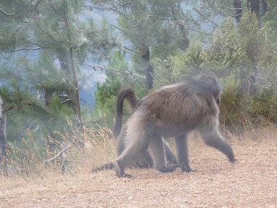 "........... En dan, na maanden te hebben gewacht, is het eindelijk zover, midden op de weg zit een apenfamilie. Bruin - grijsachtige vacht, niet al te groot. Zeker geen gorilla’s. ............."