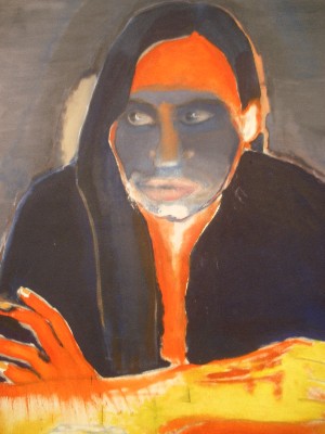 "........... Er tegenover hangen drie zeer expressieve in felle kleuren uitgevoerde vrouwenportretten “Genetische Heimwee” - intrigerende titel die ik nog steeds probeer te begrijpen-, “Martha - Sigmund’s Wife” en “Het Kwaad is Banaal” ............."