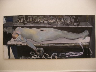 "........... een opgebaarde naakte Sneeuwwitje - gebroken arm met digitale camera hangt ontspannen over de rand van de kist - met Zeven Dwergen die als volleerde voyeurtjes over de deksel van de doodskist het lichaam van deze schone slaapster bewonderen. Het doet me sterk aan de anatomische les denken.............."
