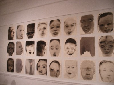 "........... In de kleine donkere zaal aan de andere kant hangt een grote collage van geaquarelleerde portretten, ............."