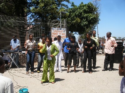 "........... Met op de achtergrond het handgeschreven reclamebord van een “specialist” die vrijwel alle huishoudelijke apparaten repareert en met flink wat publiek op straat gaan ze onvermoeibaar door. Goed geoefende danspasjes, meerstemmige koorzang en elkaar afwissellende solisten die hopen op hun eerste platencontract of betaalde optreden. ............."