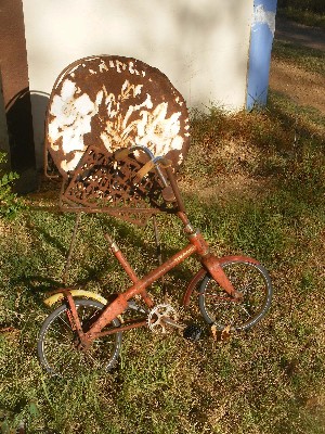 "........... Overal op het erf, in de tuin, op de stoepen, in het voormalige bediendenverblijf staat tot leven gewekt oud ijzer. ............."