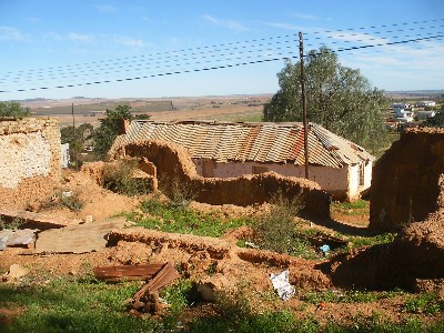 "........... Van een paar huizen staan niet meer dan de resten van de muren overeind, die zijn uiteraard onbewoond ............."