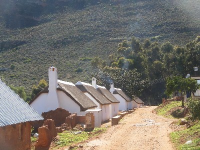 "........... Tegen lunchtijd nemen we afscheid, er komt rook uit de schoorstenen. Nee, niet van een gezellige open haard, maar van het hoogstnoodzakelijk kookvuur in de kombuis, de keuken. ............."