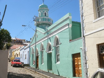 ".......... Het is een voornamelijk door moslims bewoond stadsdeel - geen kerken, veel moskeeën - aan de rand van de stadskom die aan de voet van de Tafelberg ligt, in de schaduw van de Leeuwenberg en de Seinheuvel ............."