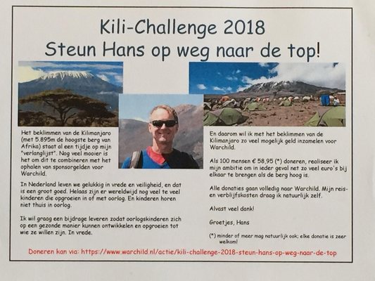 "........... Begin oktober geef ik de Kili fondsenwerving een nieuwe slinger ............."