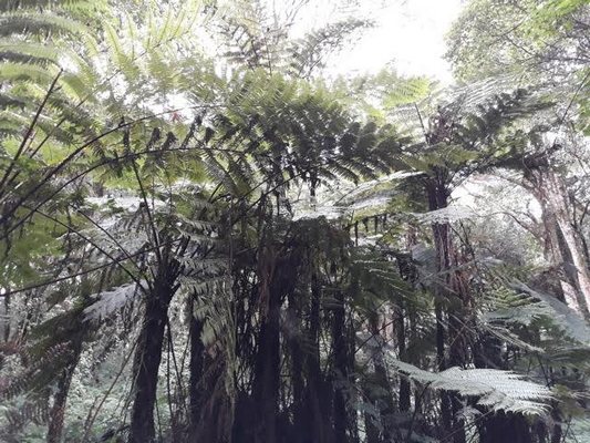 "........... We wandelen door het regenwoud, met weelderige begroeiing ............."