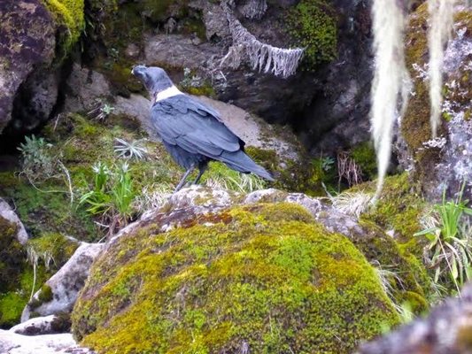 "........... De "white necked raven" schooien om een graantje mee te pikken. ............."