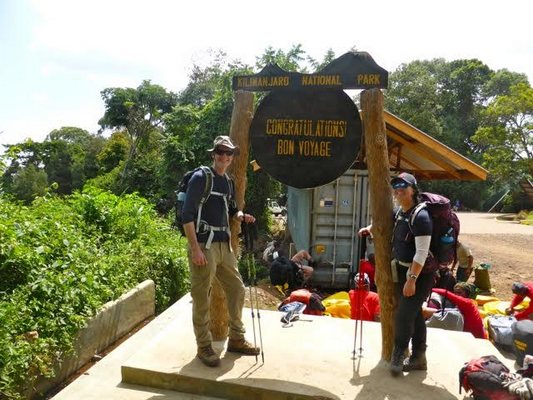 "........... Na 5 1/2 uur komen groepsgenoot Ly, met wie ik vandaag loop, en ik aan bij Mweka Gate. Het zit erop! ............."