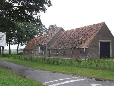 "........... Een typische uit drie delen bestaande boerderij, aangepast aan de lokale omstandigheden door het woonhuis tussen twee schuren te plaatsen, de ene een stal voor het vee, de andere voor de opslag van de gereedschappen. ............."
