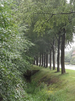 "........... Langs de vrijwel droge Westerbeeksloot, het kanaal waardoor de bouwmaterialen voor de kolonie werden aangevoerd, ............."
