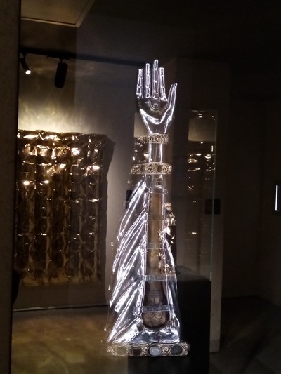 "........ Nou, dat de conservator dat wel wist, zag ik gelijk al bij die in de lucht stekende glazen hand die in mijn ogen hedendaags leek te zijn, maar een armreliek uit de 13 eeuw bleek te zijn, met op de achtergrond .... ............."