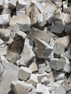 "........... Naast het toegangshek staat een bak met stukken marmer, brokken van wat werd gesloopt om te worden vervangen. “Desgewenst kunt u als herinnering een stuk marmer meenemen” wordt de bezoeker aangemoedigd. ............."