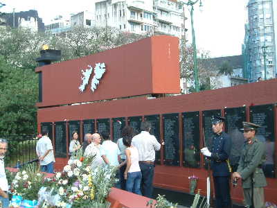 ".......... Op maandagmiddag 2 april is het druk bij het Monument voor de Gevallenen van de Malvinasoorlog in het stadsdeel Retiro van Buenos Aires .............."