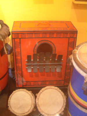 "...........Tot twee keer toe kom ik een enorme klankkast tegen met een handvol brede repen metaal erop, die beslist niet met twee duimen kunnen worden bespeeld. ..............."