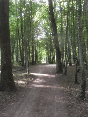 "........... die een stuk van de bosweg afstaat en nauwelijks opvalt tussen de bomen. ............."