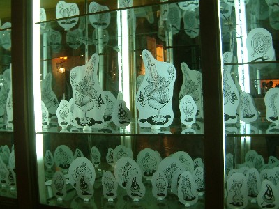 "..........Op de schappen van de vitrine waar vroeger de echte taartjes van de meesterpatissier moeten hebben gestaan, staan nu “delicias danzantes del molino - dansende lekkernijen” eendimensionale namaak ijsjes en taartjes van Alberto Possalini............"