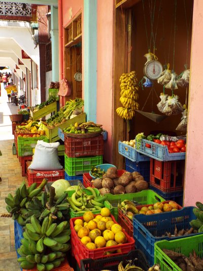 "........... De straathandel rond het marktgebouw heeft het stukken drukker dan de kooplieden binnen. ............."