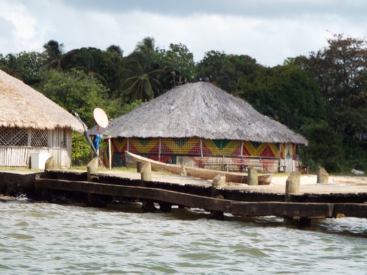 "........... Het visitekaartje van dit Miskitodorp, het naast de aanlegsteiger gelegen gemeenschapshuis van bamboe dat is versierd met kleurrijke patronen en een dak van palmblad heeft en de uit een boomstam gehakte korjaal die er naast ligt, ............."
