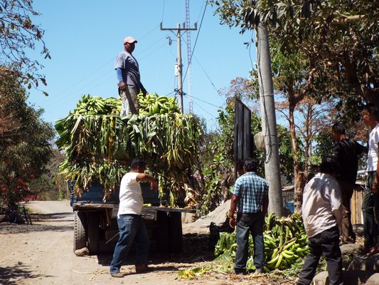 "........... Kort daarna komen we de eerste truck tegen waarvan de eigenaar bezig is bananen op te kopen. ............."