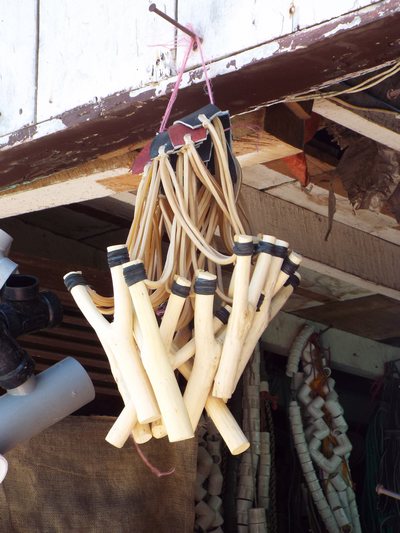 "........... In de deur van een gereedschapswinkel hangen de mooiste katapulten die ik ooit heb gezien, ............."